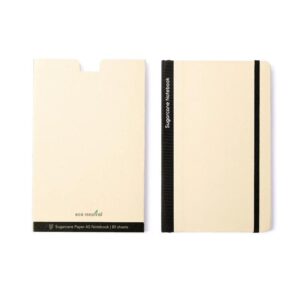 Notebook made with sugarcane paper. Matching sleeve. A5.