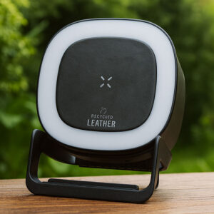 Recycled 15W wireless charger. Bluetooth speaker.