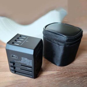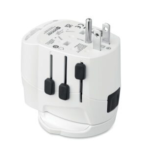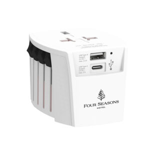 Worldwide travel adapter with multi-USB ports.