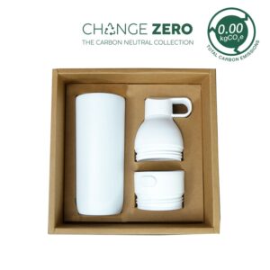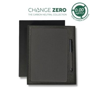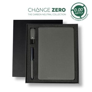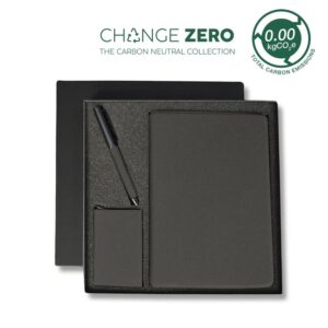 Sustainable refillable notebook, pen & USB keychain gift set.