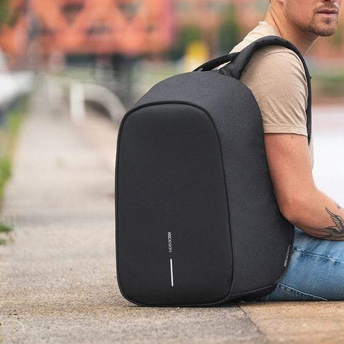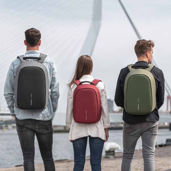 Made from genuine recycled PET materials that can be tracked using the physical tracer and block chain technology. Cut-proof protection, hidden zipper closures & pockets keep your belongings safe. Adventura also features an integrated USB charging port, water-repellent fabric, illuminating safety strips and a luggage strap. Padded compartments for a 15.6” laptop, tablet up to 12.9” and all your other belongings. Each bag saves 16 litres of water and reuses 27 plastic bottles. Registered design®