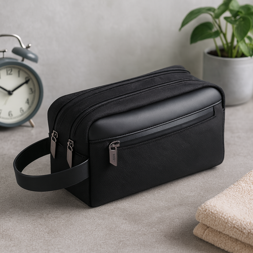Ajjuri is a sustainable cosmetic / travel pouch made with high-end durable 1680D recycled rPET material (certified by Global Recycled Standard) and stylish leather components Each recycled pouch saves 10L of water and reuses 4 plastic bottles. Contributes to Water.org – a global NGO that provides safe water to millions in need.