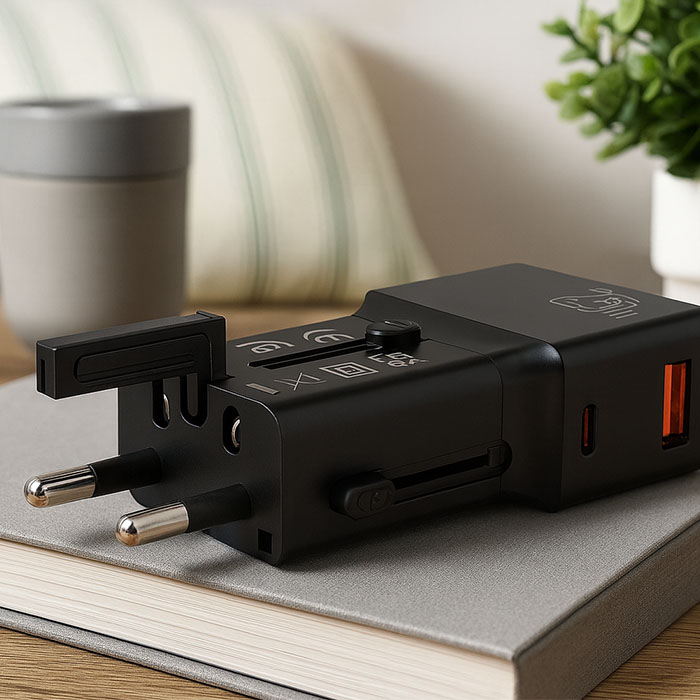 Stay powered wherever you go with this compact travel USB charger. Equipped with US, UK, AUS, and EU input pins, it ensures compatibility across regions, while USB-C and USB-A outputs deliver fast charging up to 25W, with dual-port support up to 15W. CE, FCC, and UKCA certifications guarantee safety and reliability. Its portable, travel-friendly design makes it ideal for work, commuting, or adventures. Comes neatly packed in a gift-ready box for convenience.
