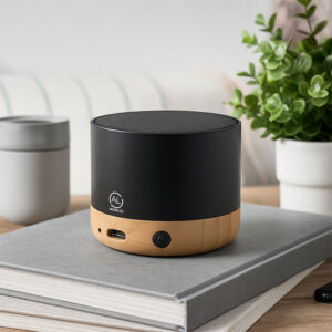 Elevate your listening experience with this eco-friendly Bluetooth speaker, crafted from durable ABS, natural bamboo, and sustainable RPET fabric. Powered by Bluetooth 5.3, it ensures seamless connectivity and a rich, clear sound from its 5W speaker. With a 500mAh rechargeable battery, enjoy hours of music on the go. Compactly packed in a simple brown box, this speaker combines style, sustainability, and performance, making it perfect for eco-conscious music lovers.