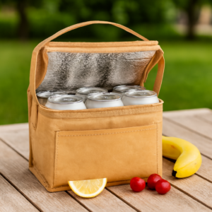 Keep your refreshments cool and stylish with this RPET 600D cooler bag, featuring a distinctive cork base detail for a natural touch. Made from recycled PET materials, it includes a PEVA lining with 2mm PE foam insulation to maintain temperature. With a compact 5L capacity, it’s ideal for lunches, picnics, or short outings. Durable and eco-conscious, this cooler bag combines practicality with modern design—perfect for everyday use or sustainable gifting.