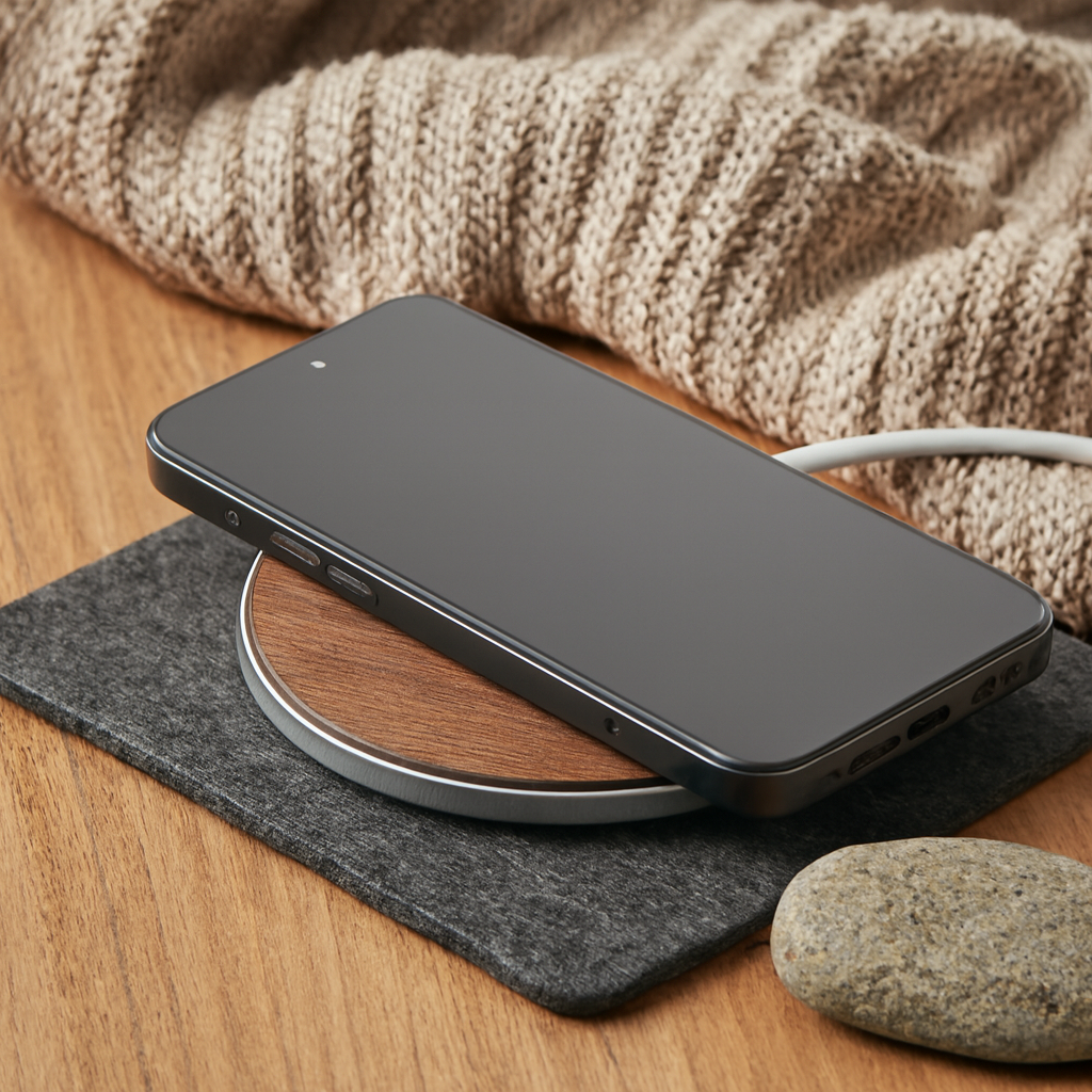 Crafted with sustainability in mind, this wireless charger combines a recycled aluminum base with a sleek walnut top detail. Simply connect the charger to your computer, place your QI-enabled smartphone on it, and enjoy effortless charging. With a powerful output of DC 9V/1.67A (15W), it’s perfect for the latest Androids, iPhone® 8, X, and newer models. A functional and eco-friendly addition to your workspace or home that blends modern technology with timeless design.