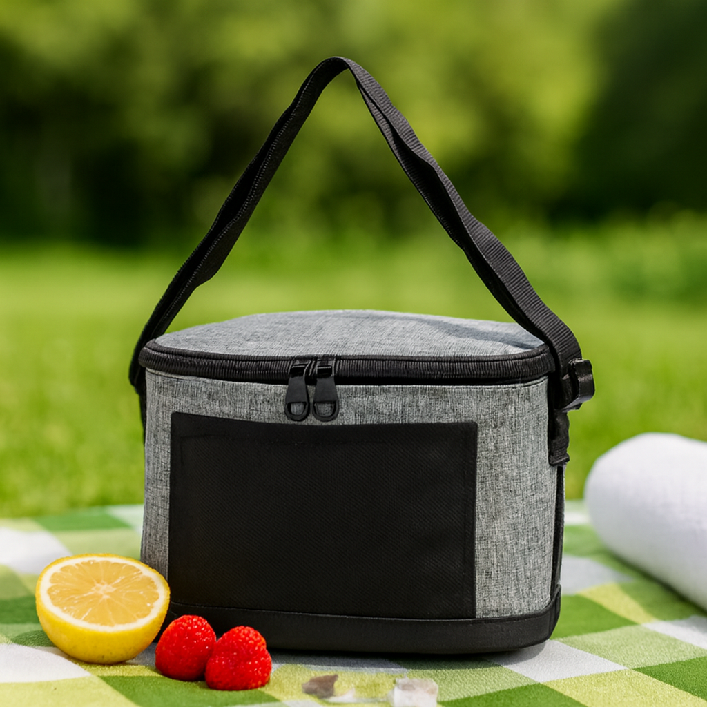 6 can capacity Camp makes a great promotional gift. Made of dual tone fabric exterior and foam insulation on the inside, this bag keeps food fresh for your office meal, school lunch or beach picnic. A front slip pocket can hold cuttlery and wipes.