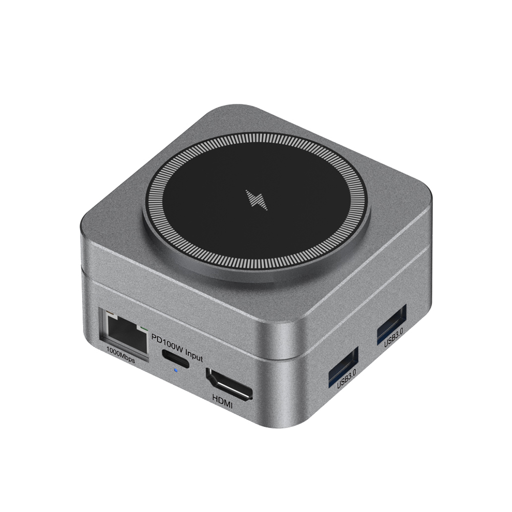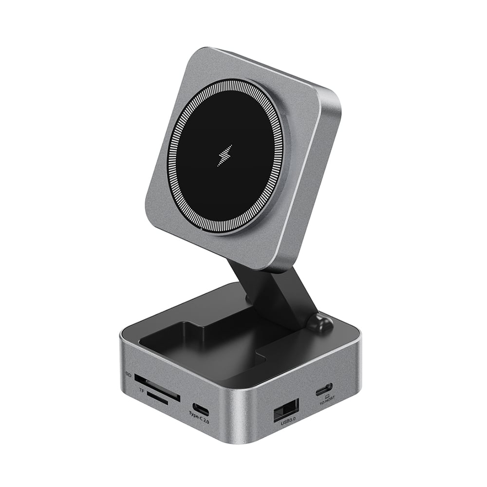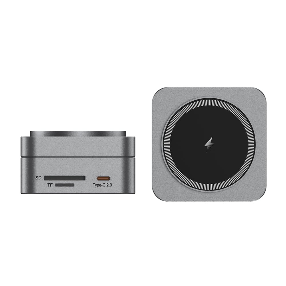 Premium high-capacity charging station combines sleek gunmetal design with powerful functionality. Featuring 10 versatile ports, it offers MagSafe wireless charging, three USB 3.0 ports, HDMI output, three Type-C ports with up to 100W power delivery, TF and SD card readers, and a high-speed 1000Mbps LAN port. Designed for professionals and creatives, it ensures seamless multi-device connectivity and fast charging. Compact and portable, it comes in eco-friendly packaging, making it an essential tool for modern workspaces and travel.