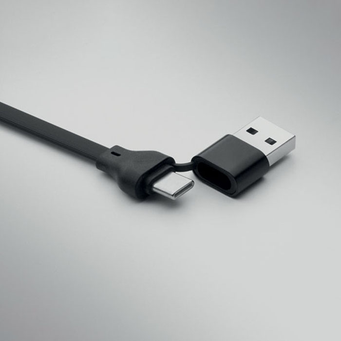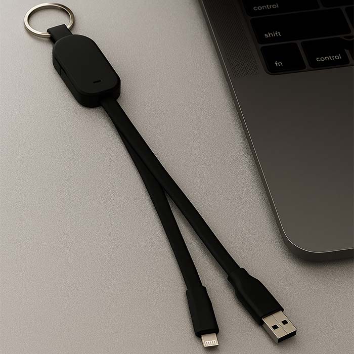 60W charging cable combines function and sustainability in a compact design. Housed in a recycled ABS casing, it features a built-in keyring and a handy phone stand for everyday convenience. The 26 cm cable offers versatile connectivity with a 2-in-1 Type-C and Type-A input, plus a dual-output pin supporting both Type-C and micro-B devices. Ideal for travel or daily use, this eco-conscious accessory keeps your devices powered without compromising on style or functionality.