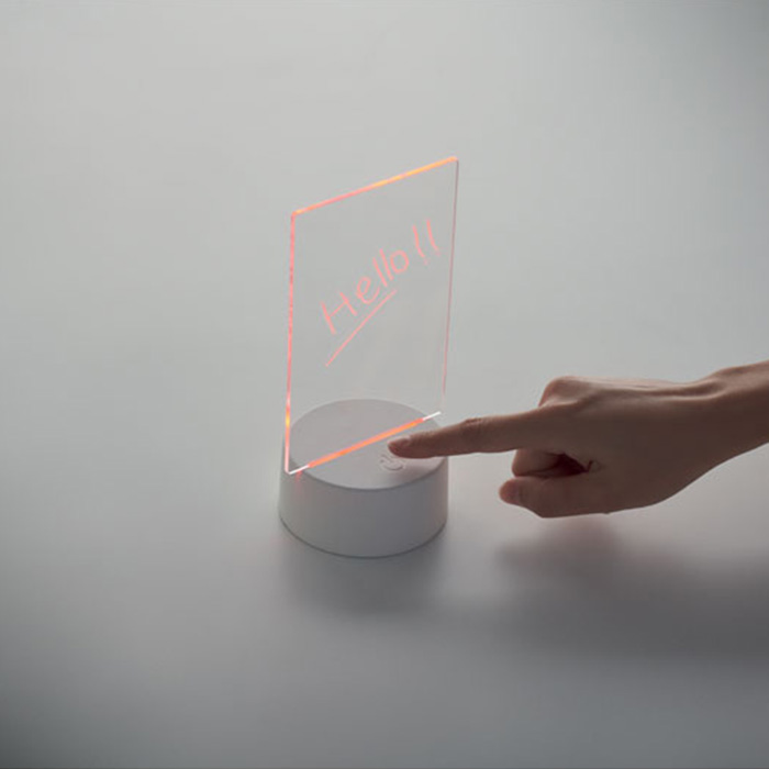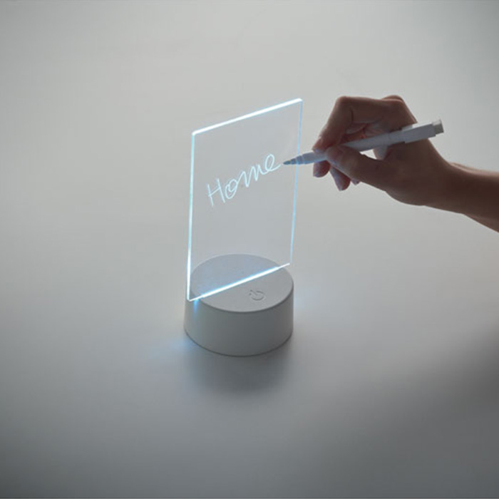 Bring messages to life with this stylish LED memo board, perfect for notes, reminders, or creative doodles. Featuring a clear acrylic writing surface and a sleek aluminium base, it comes with an erasable white marker for easy updates. The colour-changing LED light adds a vibrant glow, making messages stand out day or night. Battery powered for convenience, it operates on three AAA batteries (not included), ideal for desks, counters, or bedside tables.