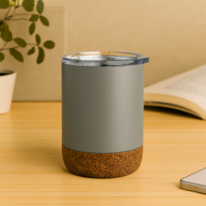 Recycled glass mug with bamboo lid. Capacity: 300 ml. Bamboo is a natural product, there may be slight variations in colour and size per item, which can affect the final decoration outcome.