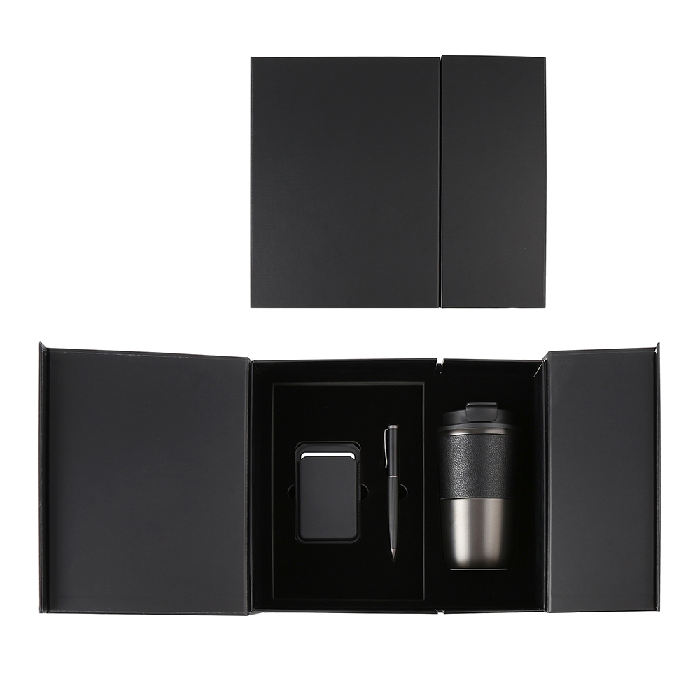 An elegant gift collection that blends warmth, style, and practicality. This refined set includes a 420ml stainless steel mug for enjoying hot or cold beverages, paired with a premium PU notebook and sleek metal pen for effortless notetaking. Presented in a luxurious leather box with a recyclable paper sleeve, it combines timeless design with everyday functionality. Perfect for corporate gifting, client appreciation, or personal use, this collection offers sophistication in both presentation and purpose.