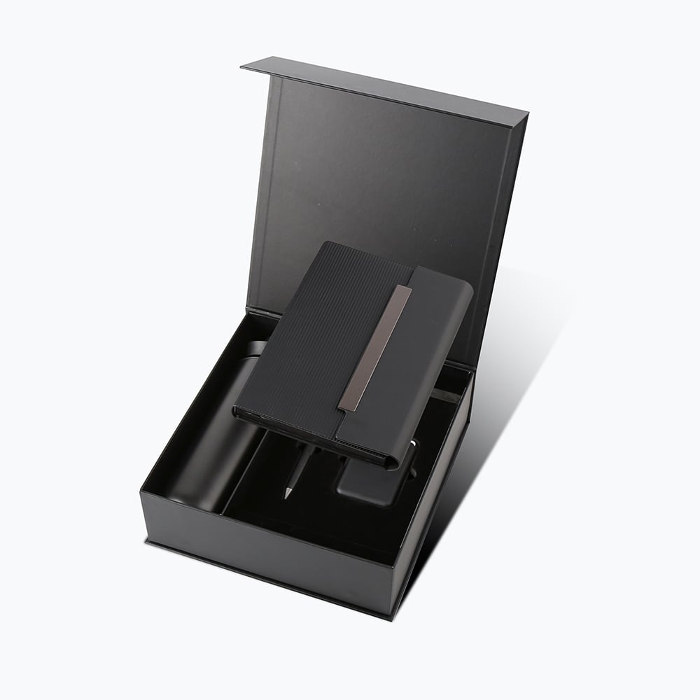 A premium 5-piece onboarding gift pack designed to welcome new employees with style and thoughtfulness. This curated set includes a 600ml vacuum-insulated stainless-steel bottle to keep beverages hot or cold, a professional PU binder notebook, and a sleek metal pen for everyday productivity. Thoughtfully blending practicality with elegance, the Employee Welcome Set is presented in an eco-friendly paper sleeve, making it perfect for onboarding programs, corporate gifting, and employee appreciation events.