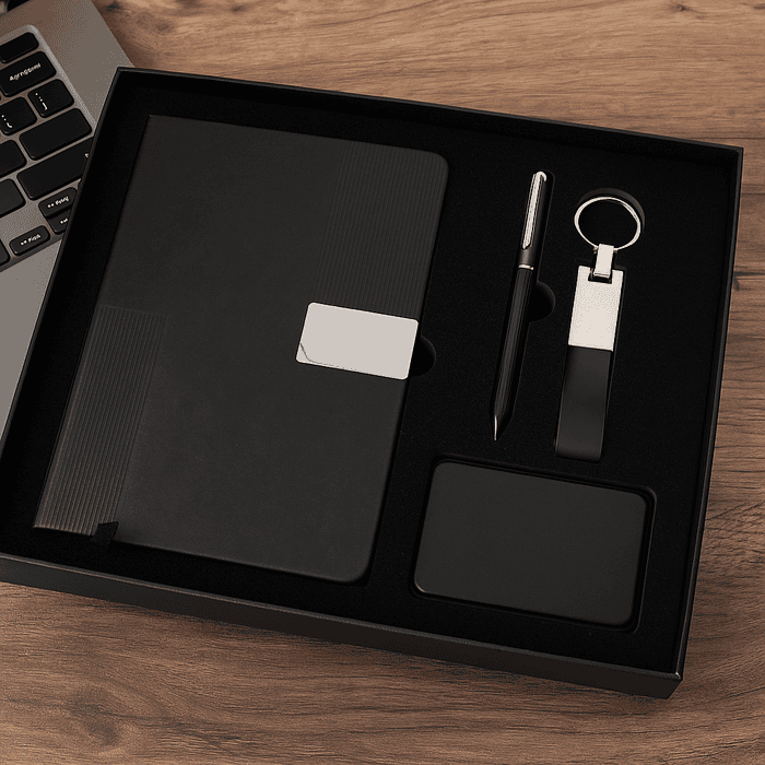 Premium 4-piece gift set includes an A5 notebook with 80 sheets of smooth 70gsm paper, ideal for everyday notes and ideas. The elegant metal twist pen ensures a seamless writing experience, while the metal and PU leather keychain adds a refined touch of style and functionality. Completing the set is a magnetic phone holder, designed for hands-free convenience at home, in the office, or on the go—perfect for modern professionals.