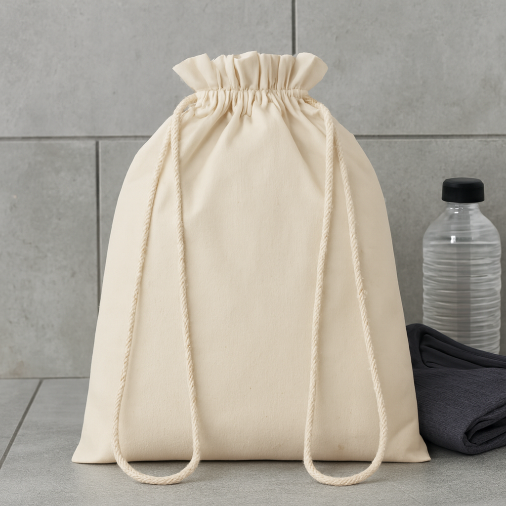 Medium gift cotton draw cord bag. Size approx. 25 x 32cm. 105 gr/m².