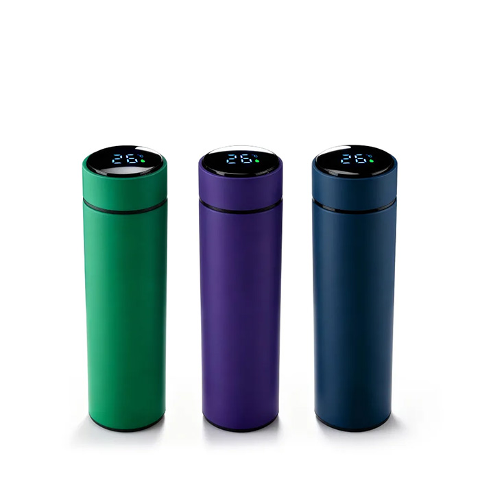 Upgrade your daily hydration with this premium stainless-steel bottle featuring a soft-touch rubberized finish and double-wall vacuum insulation to keep beverages hot or cold for hours. The intelligent touch sensor lid with LED display shows the temperature instantly, while the included 304 stainless steel tea infuser adds convenience for tea lovers. Its slim, easy-to-grip design, leakproof construction, and premium packaging make it perfect for everyday use, corporate gifting, and promotions.