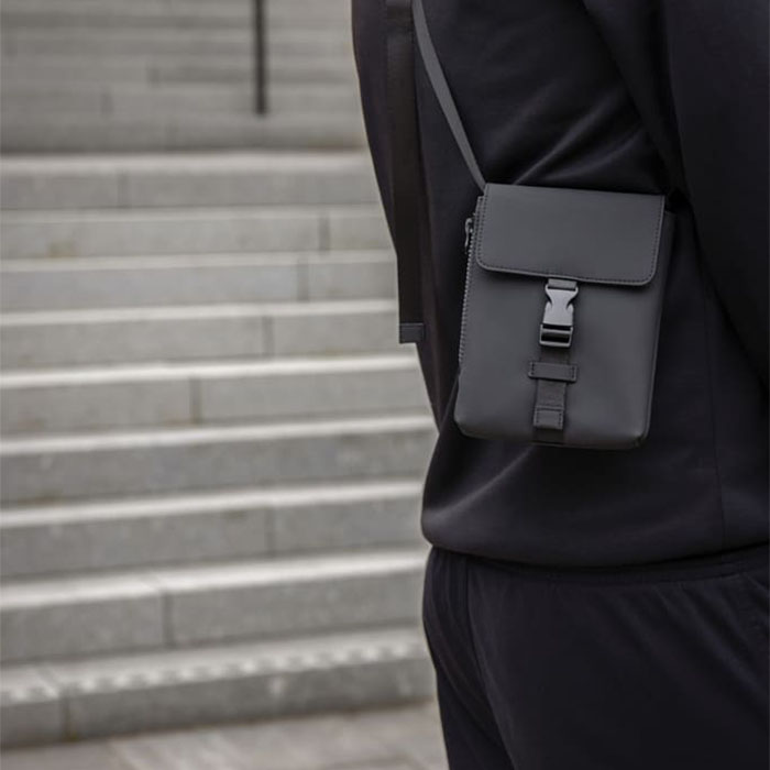 Carry your essentials in style with this versatile bag, perfect for travel, city adventures, or casual walks. Crafted from smooth PU material with water-repellent finish, it features a smart side zip for easy access and a small inner pocket ideal for cards or keys. High-quality zippers secure both the main compartment and front pocket, while multiple compartments keep belongings organized. The adjustable shoulder strap ensures comfortable, flexible carrying. Made with 16% RCS-certified recycled polyester for a sustainable touch.
