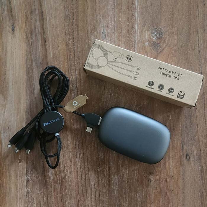 Eco-friendly charging cable is crafted from sustainable recycled PET material, combining durability with environmental responsibility. Designed to support Android, iPhone, and C-type devices, it offers versatile connectivity. Packaged in recyclable kraft paper, it underscores our commitment to reducing waste. With a convenient 1-meter length, it’s perfect for everyday use, ensuring you stay connected while making an eco-conscious choice. Ideal for those who value both functionality and sustainability.