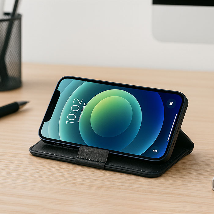 Mobile case combines the functionality of both a protective cover and a convenient stand in a single PU material design. It features a magnetic flap for secure closure, ensuring your device stays safe and easily accessible. The integrated stand allows for hands-free viewing in both portrait and landscape orientations, adding versatility to your mobile experience. Crafted from durable PU material, it provides reliable protection against bumps and scratches while offering the convenience of a stand for watching videos or video calling. This accessory merge practicality with style, enhancing the usability and protection of your mobile device.