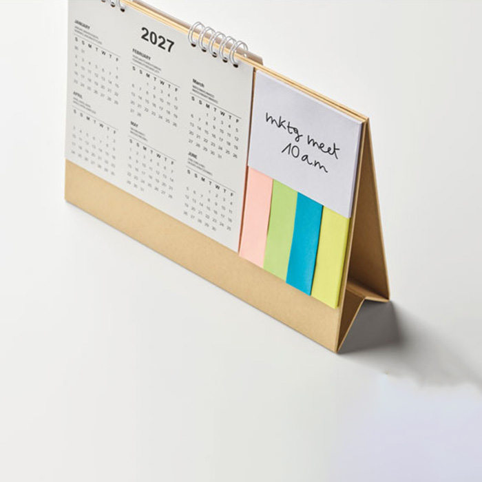 Stay organized year-round with this practical 4-year desk calendar, featuring a convenient cardboard holder that includes three sticky note pads and a memo pad for quick reminders and notes. The compact design keeps essentials within easy reach, making it perfect for both office and home use. Crafted from FSC®-certified materials (FSC MIX, P8.6, FSC-C213206), it supports sustainable forest management while adding functionality and style to your workspace. A smart, eco-conscious choice for daily planning and productivity.