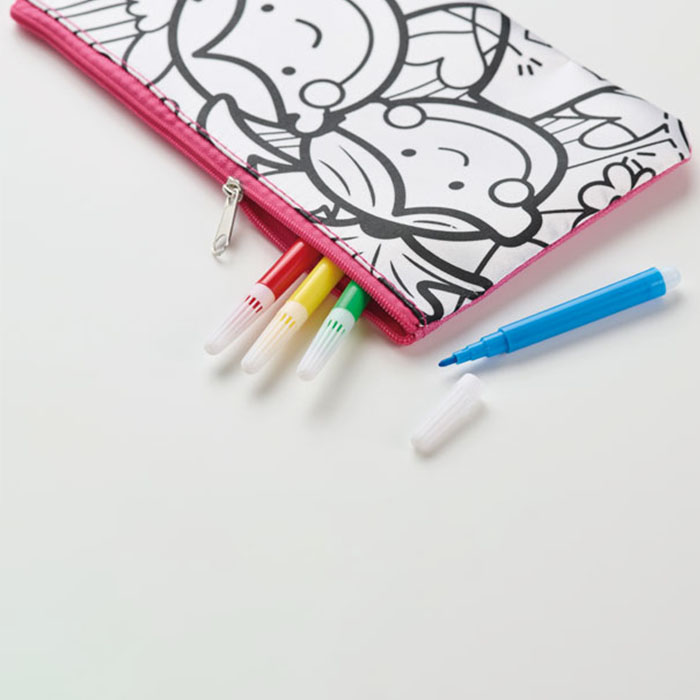 Colouring pencil case is crafted from durable 600D polyester, designed to keep your art supplies organized and protected. It includes four vibrant markers, perfect for creativity on the go. The compact and lightweight design makes it ideal for school, travel, or home use. Its sturdy construction ensures long-lasting use, while the bright markers inspire imagination. A practical and stylish choice for artists of all ages looking to bring color wherever they go.