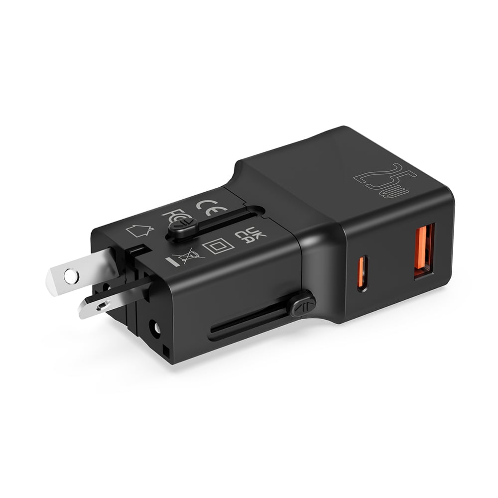 Compact and lightweight travel charger, measuring approx. 4x7x2.5 cm and weighing mere 64 gm, Noam is designed for convenience on the go. Featuring dual ports—USB-C PD Quick Charge and USB-A QC3.0—it delivers up to 15W combined output with smart power distribution. With universal 100–240V compatibility and interchangeable US/UK/AUS/EU plugs, it’s perfect for global use. Built with a durable fire-retardant PC enclosure and certified safe, it comes in recyclable, eco-friendly packaging.