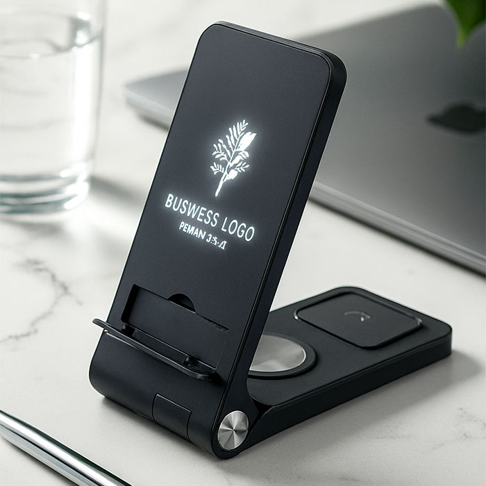 Paleun is a game-changing 3-in-1 charging solution for modern professionals. This foldable wireless charging station combines 15W fast wireless charging capabilities for phones, 2.5W for smartwatches, and 3W for earbuds, all in one sleek package. The dual-coil design ensures efficient charging for your devices. What sets this charging hub apart is the option for a light-up logo, adding a touch of sophistication to your workspace. With a USB-C input supporting various voltages, this versatile hub offers fast charging.