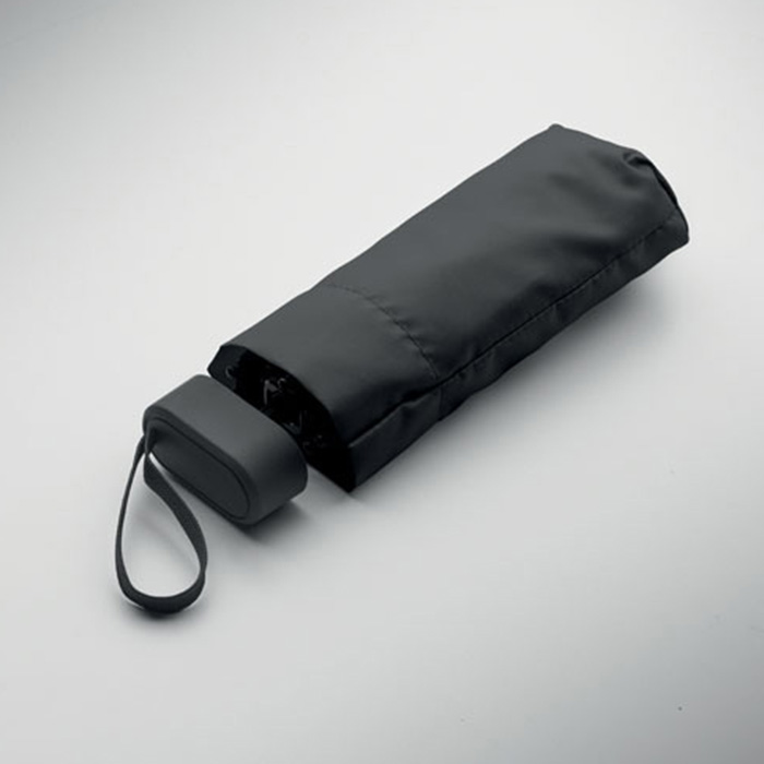Stay prepared for sudden showers with this compact 19-inch 5-fold manual umbrella. Crafted from durable 190T pongee, it offers reliable water resistance while maintaining a lightweight feel. The sturdy metal and fibreglass windproof frame provides enhanced stability in blustery conditions. A black rubberized handle ensures a comfortable grip, complete with a practical wrist strap for easy carrying. Folding down to just 17 cm, it fits neatly into bags and pockets, and includes a matching pouch for convenient storage and travel.