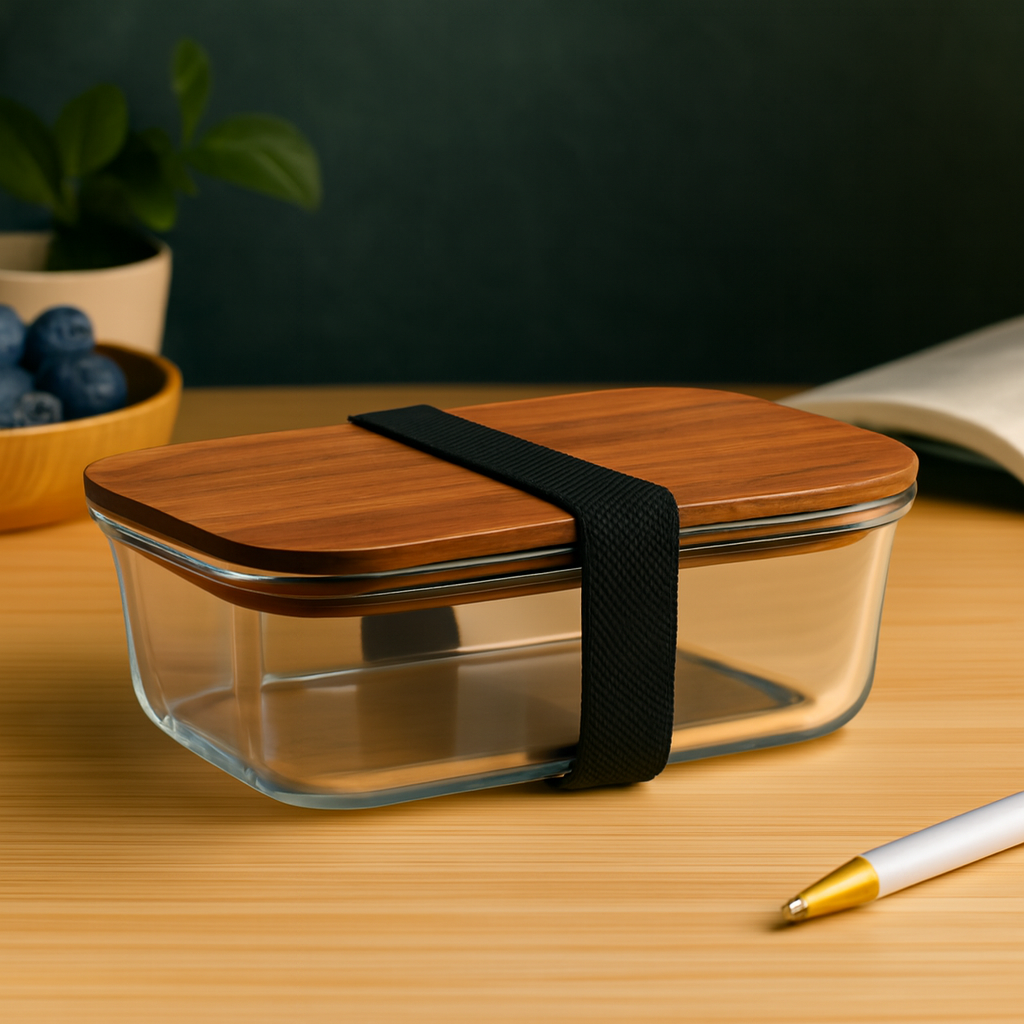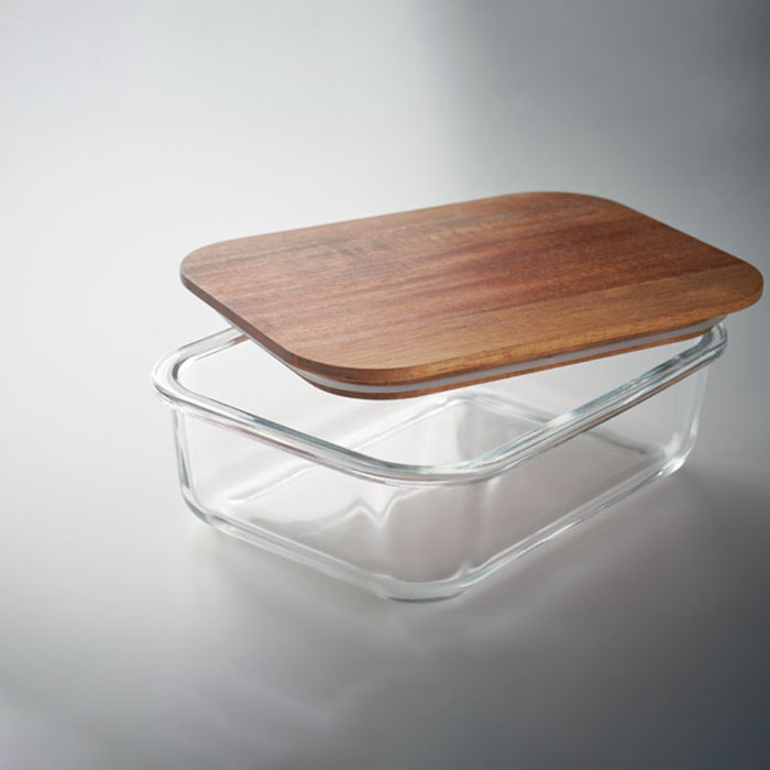 Elegant lunch box combines sustainability with style, crafted from durable glass and topped with a natural acacia wooden lid. The RPET elastic band ensures secure closure, keeping your meals safe and fresh on the go. With a generous 800 ml capacity, it’s perfect for everyday use, whether at work, school, or picnics. FSC®-certified (FSC 100%, W16.3, FSC-C213206), this eco-friendly lunch box is a practical, reusable choice that supports responsible forest management while elevating your mealtime experience.