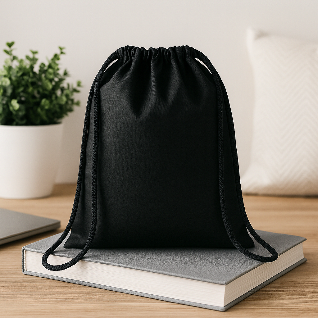 Large gift cotton draw cord bag. Size approx. 30 x 47cm. 105 gr/m². Produced under a certified standard for the use of harmful substances in textile.