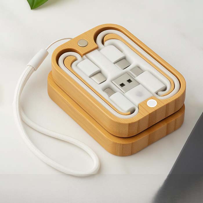 Charge with style and convenience using this 15W wireless charger and 3-in-1 cable set. The versatile cable includes Type-C to Type-C, USB-A, micro-B, and Type-C connectors, ensuring compatibility with various devices. Presented in an eco-friendly bamboo box with a magnetic closure and strap, it’s perfect for travel or gifting. The sleek and sustainable design complements any workspace, offering efficient charging for your essentials. Stay powered up while embracing functionality and sustainability.