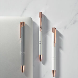 This sophisticated ballpoint pen features a sleek metal design and a convenient twist-action mechanism. It writes smoothly with blue ink, making it an ideal choice for professionals and students alike. The pen’s durable construction ensures longevity, while its ergonomic design provides comfort during extended writing sessions. Whether you’re signing important documents, jotting down notes, or simply doodling, this pen delivers a reliable and enjoyable writing experience. Its stylish appearance makes it a great gift option for colleagues, friends, or family members. Enhance your writing arsenal with this elegant and functional twist-action ballpoint pen.
