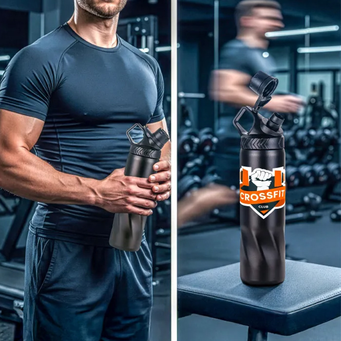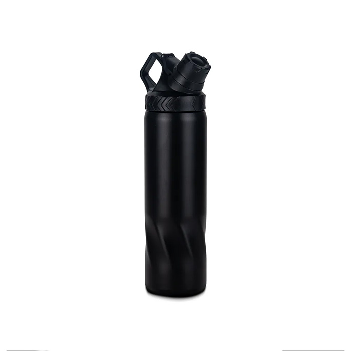Crafted from recycled stainless steel, this 620ml (21 oz) bottle delivers durability with eco-friendly style. Its sleek Black Matte Oil finish and leakproof seal cap make it perfect for daily use, while double-wall insulation keeps drinks hot or cold for hours. A lightweight 400g build and easy-to-carry handle enhance convenience on the go. Presented in a premium black carton box with foil stamp imprint, it makes an excellent gift or personal essential.
