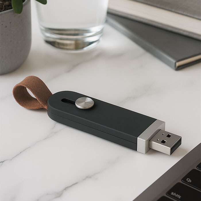 USB 2.0 Flash Drive with plastic cover. Use the button to cover the USB port, connect the USB port to start using it. Delivery time: from 14 working days. Printing options: silkscreen. MOQ own PMS 1.000 pcs.